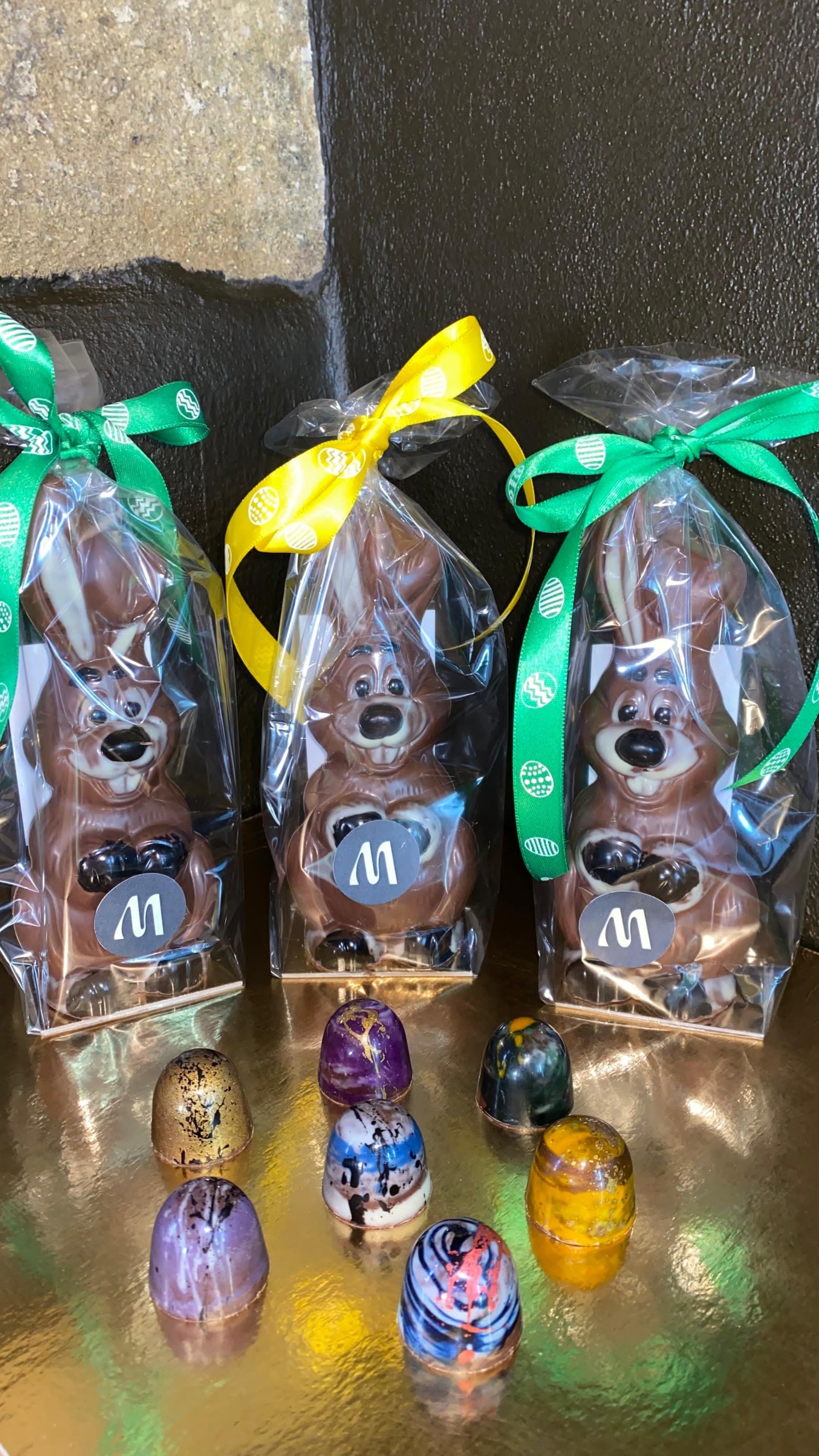 Velikonoční zajíc z mléčné belgické čokolády. Ručně malovaný - každý je originál.