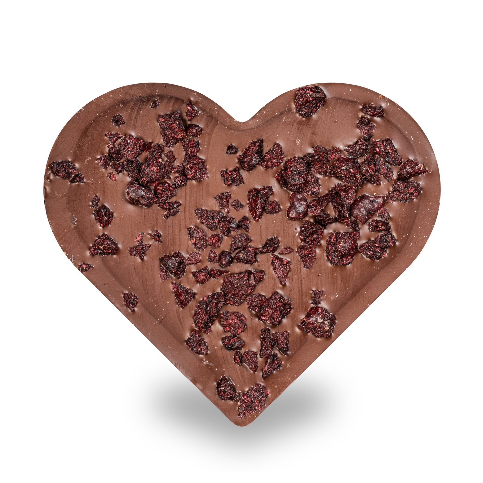 Mléčné čokoládové srdce s lyofilizovaným rybízem