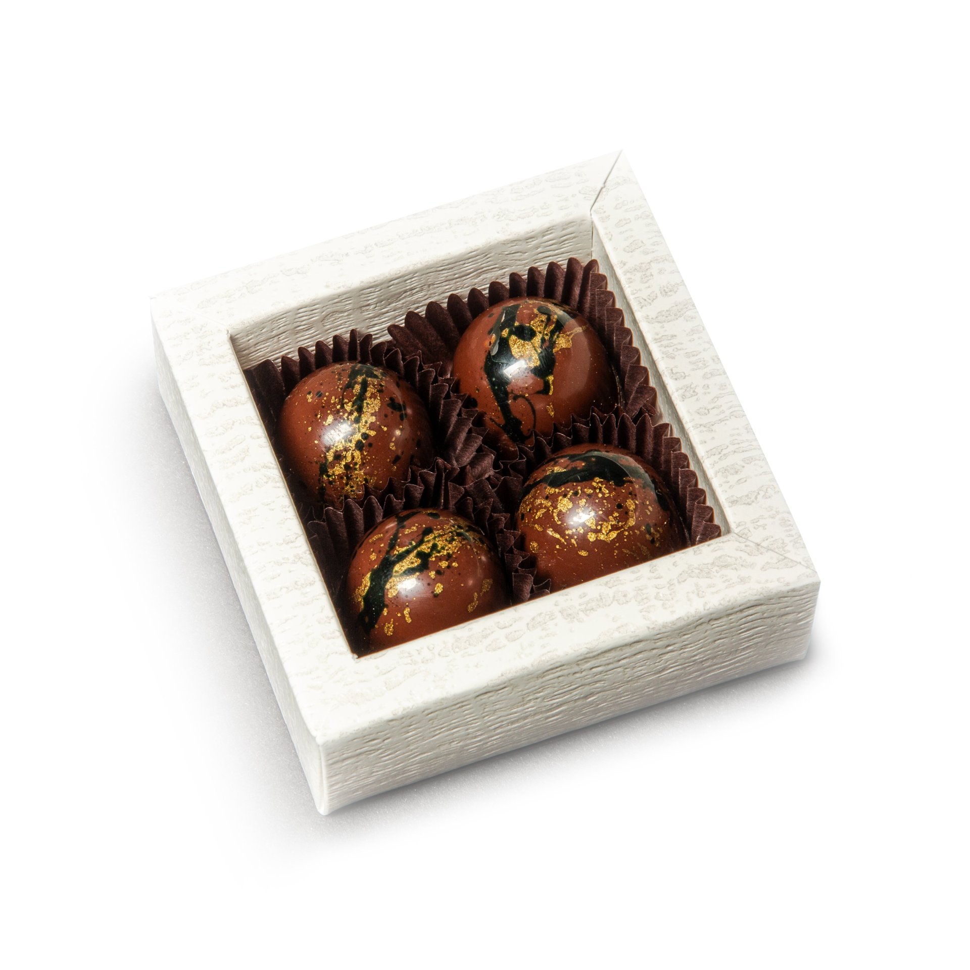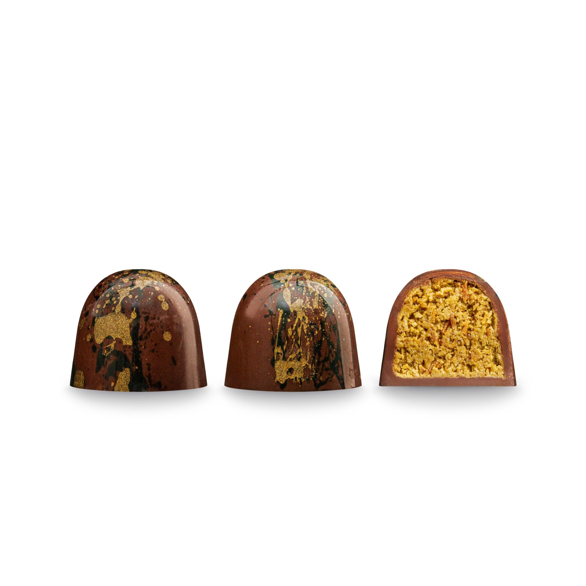 Chuťový výlet do Dubaje, kde se luxus potkává s jemností. Tato exkluzivní kolekce čtyř pralinek je inspirovaná chuťovým fenoménem, který obletěl svět. Pralinky plné 100% pistáciové pasty obohacené o sezamovou pastu, bílou čokoládu a křupavé Kadayif. Každá pralinka je malým šperkem – precizně zpracovaná, vyvážená a elegantní.