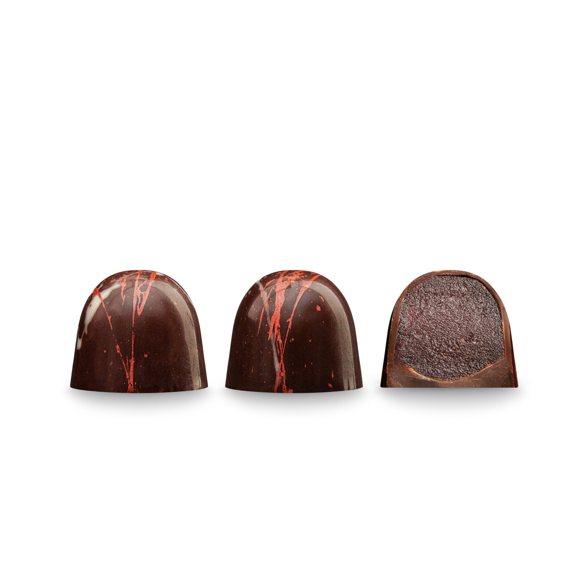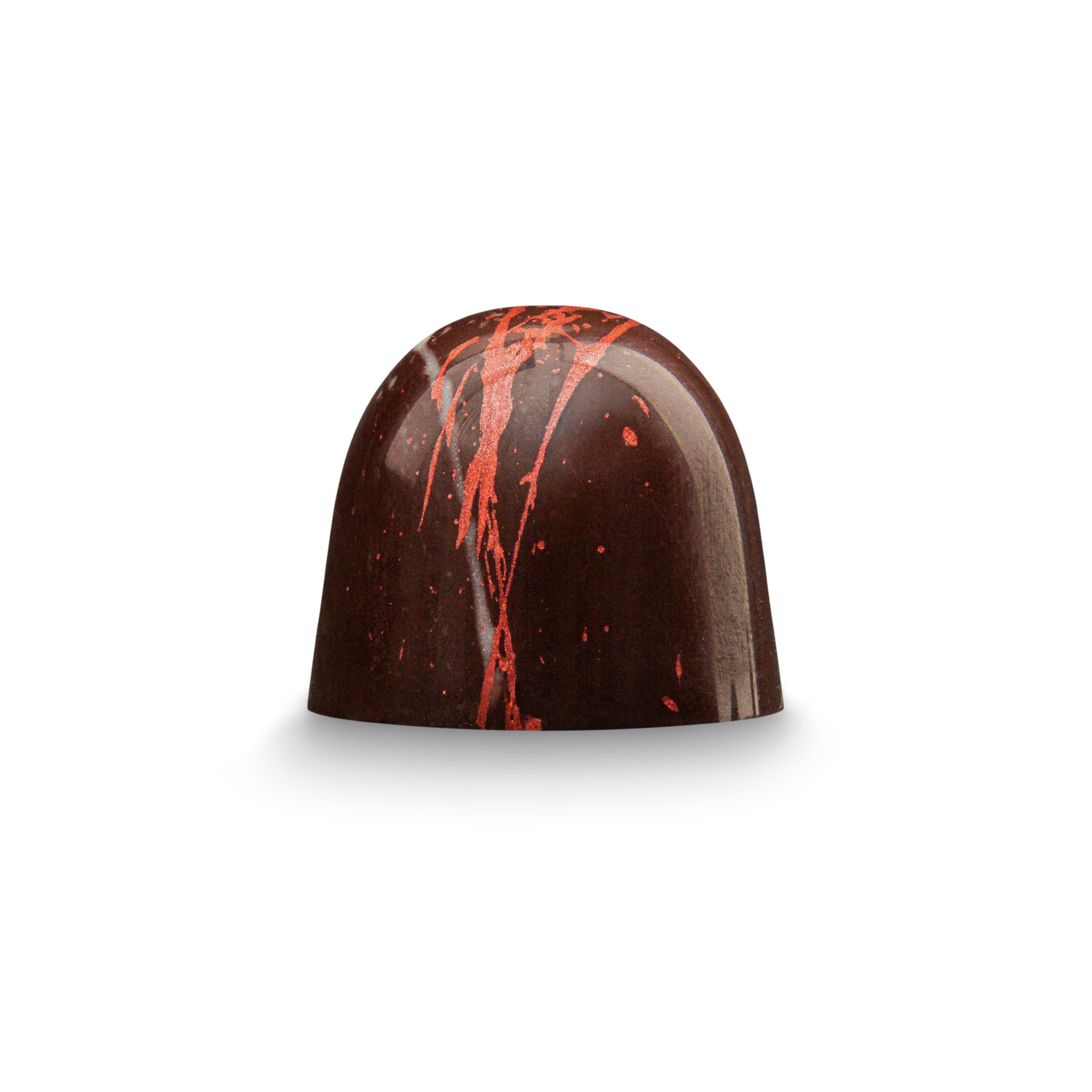 Jemný marcipán se sladkokyselým rybízovým likérem, obalený v kvalitní hořké čokoládě. Harmonická kombinace mandlové sladkosti a ovocné svěžesti vytváří pralinku s výraznou a nezapomenutelnou chutí.