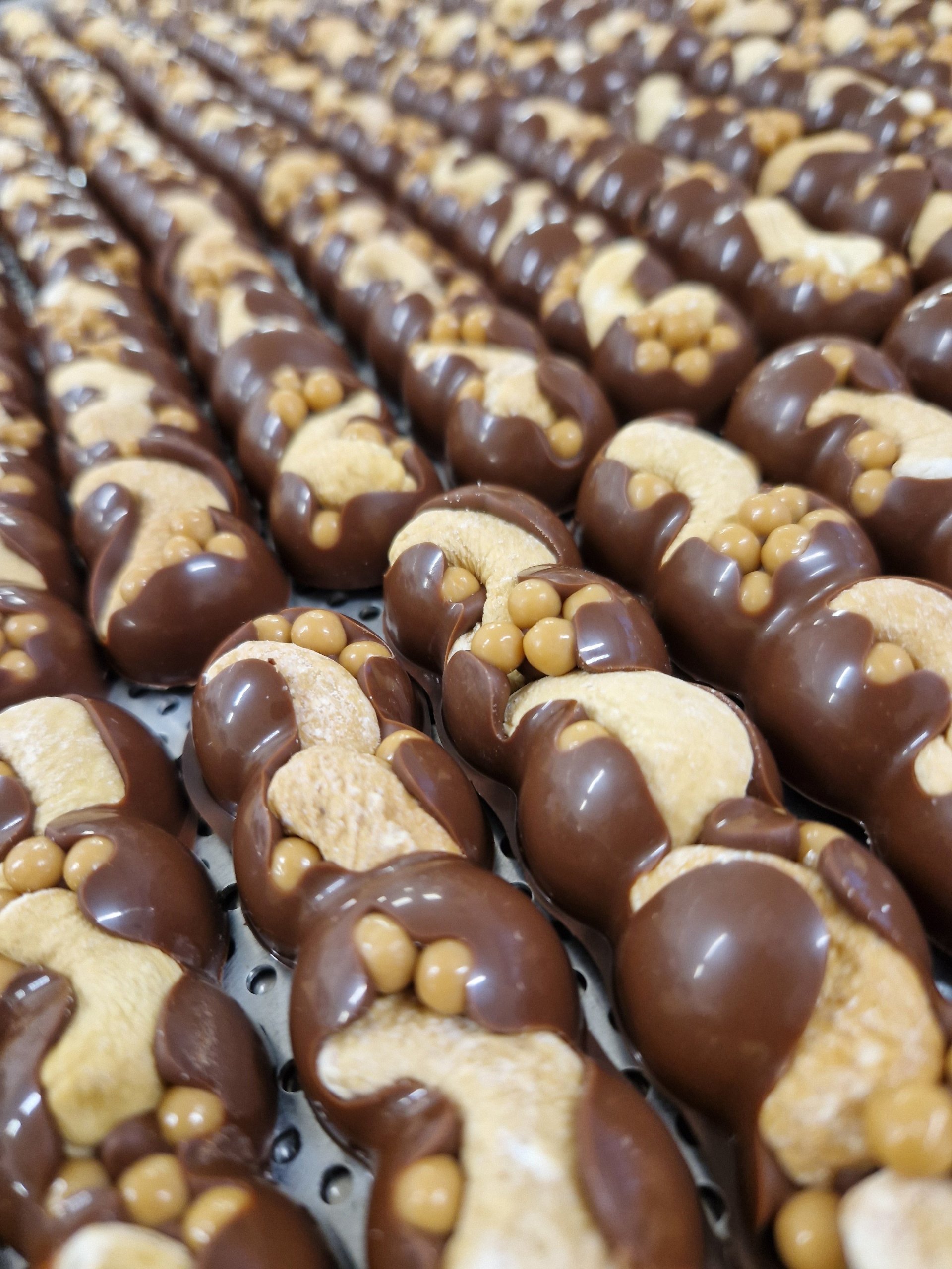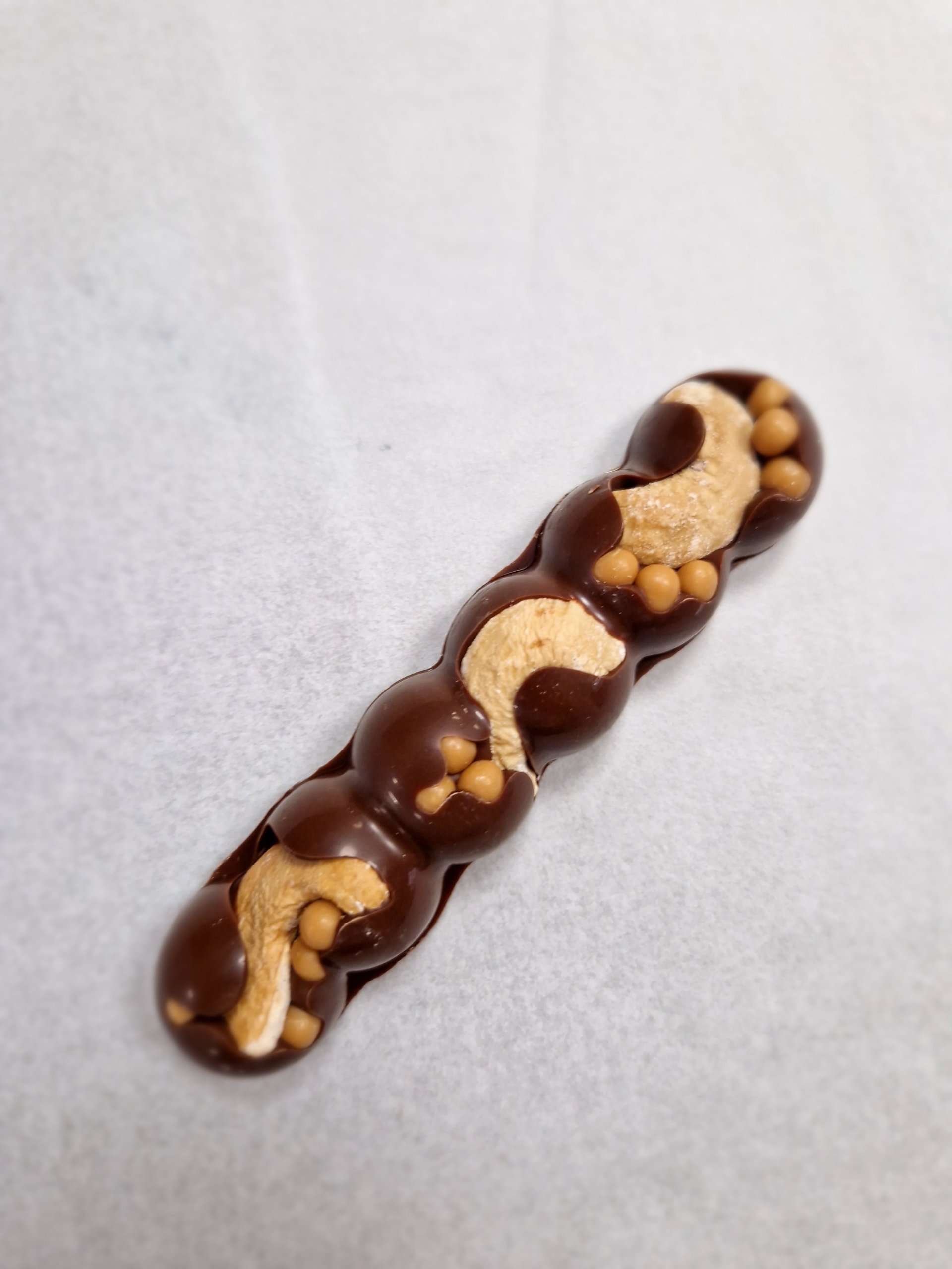 Jemně nasládlé pražené kešu ořechy obalené v kvalitní mléčné belgické čokoládě a posypané křupavými kuličkami ve slaném karamelu. Sladké, slané a křupavé v každém soustu – dokonale vyvážená kombinace, které neodoláte. Tři praktické tyčinky v balení se snadno vejdou do kabelky, batohu i kapsy, a jsou tak perfektní pro malé mlsání kdykoliv během dne.